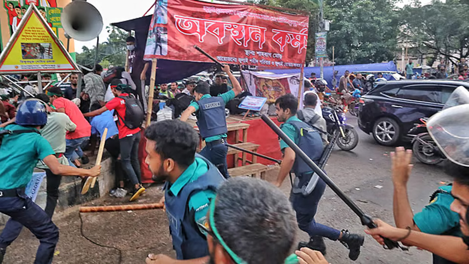 শাহবাগে এই অবরোধ কর্মসূচির আয়োজন করেছিল ‘জুলাই যোদ্ধা সংসদ’ নামের একটি সংগঠন। এই সংগঠনের আহ্বায়ক আরমান শাফিনের ভাষ্য, তাঁদের শান্তিপূর্ণ কর্মসূচিতে বহিরাগতরা অতর্কিত হামলা করেছে। হামলাকারীদের সঙ্গে পুলিশও ছিল। পুলিশ তাঁদের লাঠিচার্জ করেছে। এতে তাঁদের অন্তত ৮ জন আহত হয়েছেন। একজনের অবস্থা আশঙ্কাজনক। আরমান শাফিন বলেন, হামলাকারী বহিরাগত কারা সেটি তাঁরা জানেন না। তাঁরা আলোচনা করে এই হামলার প্রতিবাদে পরবর্তী কর্মসূচি ঘোষণা করবেন।