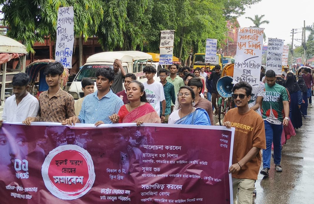 ‘রাষ্টের মেরামত নয় -চাই আমূল পরিবর্তন’ এই স্লোগানে সিলেট ‘ক্বিন ব্রিজ’ এলাকায় জুলাই স্মরণে ‘দ্রোহের সমাবেশ’ আয়োজন করা হয়।