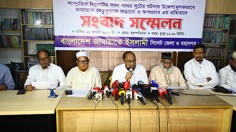বৃহস্পতিবার দুপুরে নগরের বন্দরবাজার এলাকায় জামায়াতের মহানগর কার্যালয়ে জেলা ও মহানগর জামায়াতের উদ্যোগে এক সংবাদ সম্মেলন হয়। এতে বলা হয়, পাথর লুটের ঘটনায় প্রকৃত অপরাধীদের আড়াল করতে জামায়াত নেতাদের নিয়ে অপপ্রচার চলছে। পাথর লুট দূরে থাক, কোনো অন্যায় ও অপকর্মের সঙ্গে জামায়াতের দূরতম কোনো সম্পর্ক নেই।