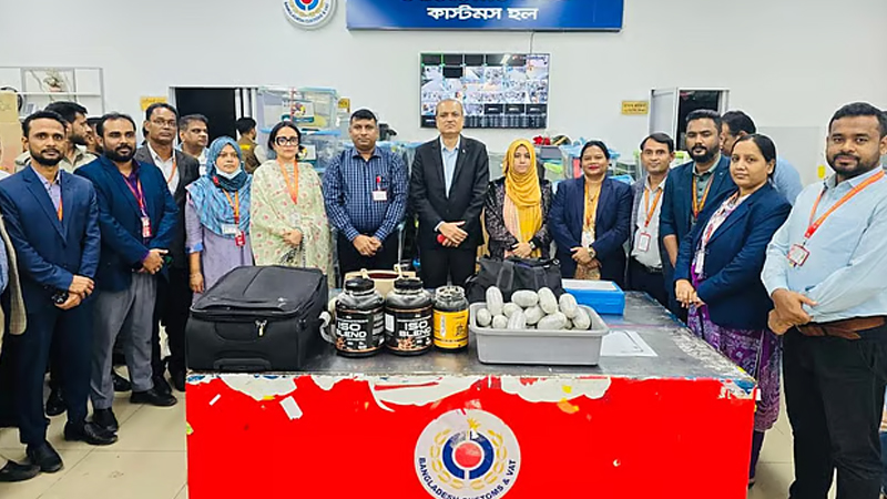 ঢাকায় হজরত শাহজালাল আন্তর্জাতিক বিমানবন্দরে সাড়ে ৮ কেজি কোকেনসহ গায়েনার এক যাত্রীকে আটক করা হয়েছে। সোমবার গভীর রাতে এই যাত্রীকে আটক করা হয়। তাঁর নাম এম এস কারেন পেতুলা স্টাফেল। শুল্ক গোয়েন্দা ও তদন্ত অধিদপ্তর এই তথ্য জানিয়ে বলেছে, জব্দ করা কোকেনের দাম প্রায় ১৩০ কোটি টাকা। মঙ্গলবার (২৬ আগস্ট) শুল্ক গোয়েন্দা ও তদন্ত অধিদপ্তরের সংবাদ বিজ্ঞপ্তিতে বলা হয়, গতকাল রাতে অধিদপ্তরের মহাপরিচালকের কাছে গোপন খবর আসে। বলা হয়, দোহা থেকে কাতার এয়ারওয়েজের একটি উড়োজাহাজ ঢাকায় আসছে। এই উড়োজাহাজে থাকা এক যাত্রী মাদক চোরাচালানে সম্পৃক্ত থাকতে পারেন। এই তথ্যের ভিত্তিতে শুল্ক গোয়েন্দারা শাহজালাল বিমানবন্দরে সতর্ক অবস্থান নেয়। উড়োজাহাজটি দিবাগত রাত আড়াইটার দিকে বিমানবন্দরে অবতরণ করে। শুল্ক গোয়েন্দারা সঙ্গে সঙ্গে যাত্রীর পরিচয় নিশ্চিত হন।