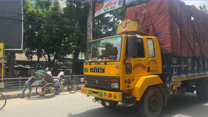 বুধবার (২৭ আগস্ট) সকাল সাড়ে ১১টা। হুমায়ুন রশীদ চত্বর থেকে শাহজালাল সেতু দিয়ে নগরে প্রবেশ করছিলো ্একটি পণ্যবোঝাই ট্রাক। ক্যামেরার উপস্থিতি টের পেয়ে নড়েচড়ে বসেন দায়িত্বে থাকা ট্রাফিক সদস্যরা। দায়িত্বে থাকা টিআই মোশাররফ হোসেন সটকে পড়েন। এগিয়ে এসে ট্রাকটিকে ঘুরিয়ে দেন টিএসআই শাহীন মোল্লা। এ সময় তিনি কালো চশমার আড়ালে ক্যামেরার দিকেও তাকান। পিছু হটে ট্রাকটি কয়েকশ গজ পেছনে নিয়ে দাঁড় করিয়ে রাখেন ড্রাইভার। অপেক্ষায় থাকেন পরবর্তী নির্দেশনার। একে একে আরও কয়েকটি ট্রাক এসে দাঁড়ায় প্রথম ট্রাকটির পেছনে।