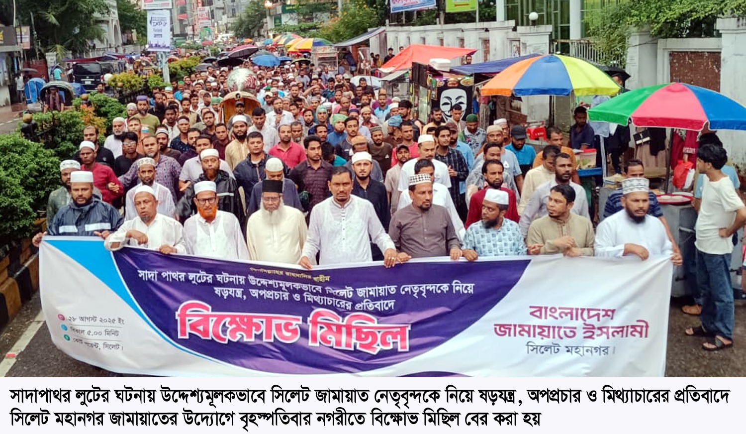 তিনি বৃহস্পতিবার (২৮ আগস্ট) বিকেলে সাদাপাথর লুটের ঘটনায় উদ্দেশ্যমূলকভাবে সিলেট জামায়াত নেতৃবৃন্দকে নিয়ে ষড়যন্ত্র, অপপ্রচার ও মিথ্যাচারের প্রতিবাদে সিলেট মহানগর জামায়াত আয়োজিত মিছিল পূর্ব সংক্ষিপ্ত সমাবেশে প্রধান অতিথির বক্তব্যে উপরোক্ত কথা বলেন। বৈরী আবহাওয়া বৃষ্টি উপেক্ষা করে মিছিলটি নগরীর কোর্টপয়েন্ট থেকে শুরু হয় গুরুত্বপূর্ণ পয়েন্ট প্রদক্ষিণ শেষে চৌহাট্টা পয়েন্টে গিয়ে সমাপ্ত হয়।
