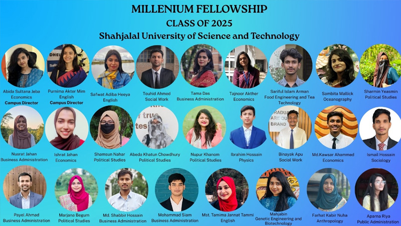 শাহজালাল বিজ্ঞান ও প্রযুক্তি বিশ্ববিদ্যালয়ের (শাবিপ্রবি) ২৬ জন মেধাবী শিক্ষার্থী অর্জন করেছেন আন্তর্জাতিক খ্যাতিসম্পন্ন জাতিসংঘ মিলেনিয়াম ফেলোশিপ ২০২৫। এটি জাতিসংঘ একাডেমিক প্রভাব (ইউএনএআই) ও মিলেনিয়াম ক্যাম্পাস নেটওয়ার্ক (এমসিএন) যৌথভাবে পরিচালিত একটি নেতৃত্ব উন্নয়ন কর্মসূচি। তরুণ শিক্ষার্থীদের নেতৃত্বের দক্ষতা বৃদ্ধি, সমাজে ইতিবাচক পরিবর্তন আনা এবং জাতিসংঘ ঘোষিত টেকসই উন্নয়ন লক্ষ্যমাত্রা (এসডিজি) অর্জনে সক্রিয় ভূমিকা রাখাই এ ফেলোশিপের মূল উদ্দেশ্য।