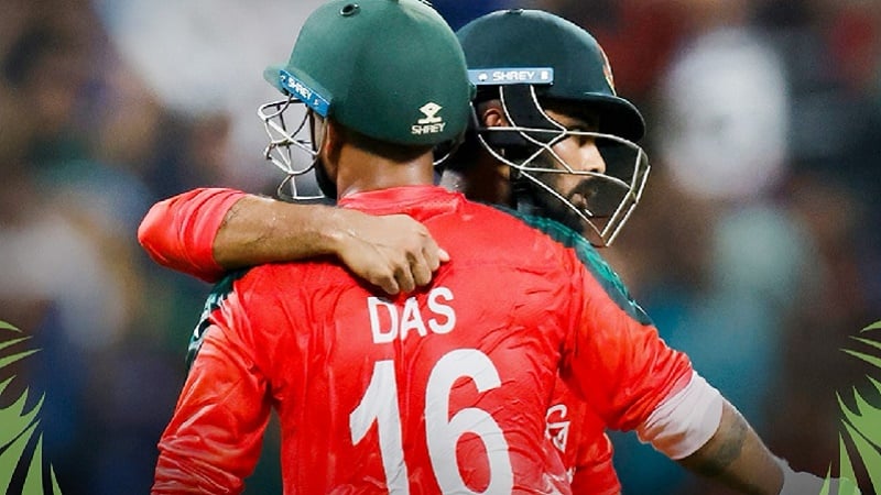 অধিনায়ক লিটনের সঙ্গে ৯৫ রানের জুটি গড়েন হৃদয়। তিনি খেলেন ৩৬ বলে ৩৫ রানের হার না মানা ইনিংস। একটি চারের শট মারেন ডানহাতি এই ব্যাটার।