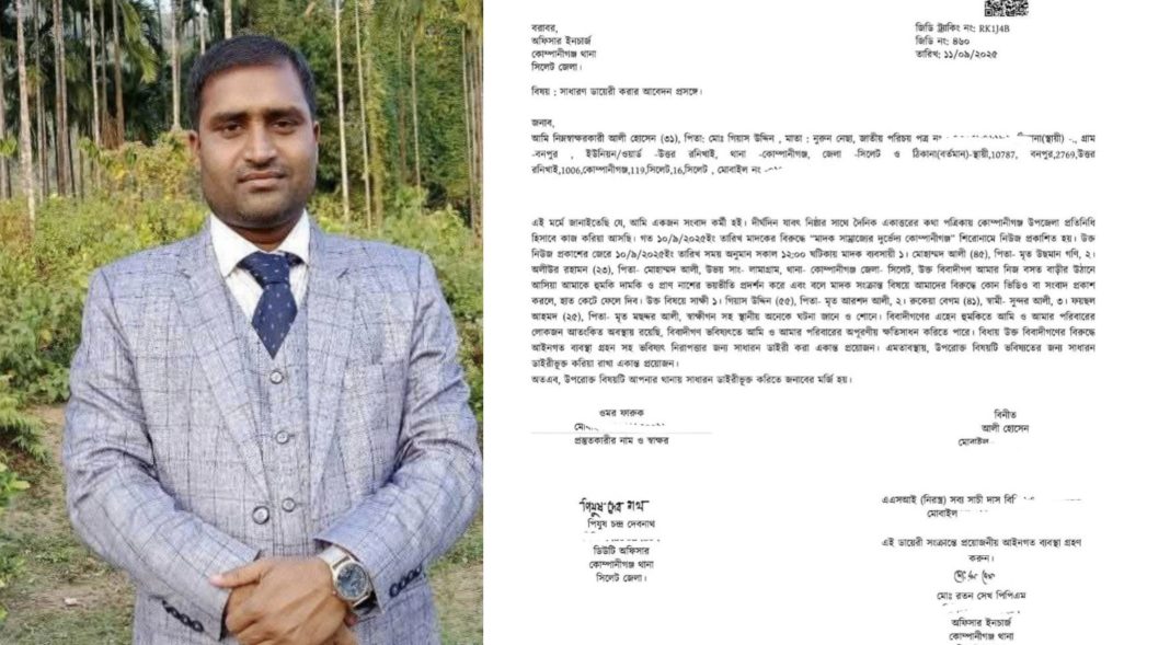 আলী হোসেন কোম্পানীগঞ্জ প্রেসক্লাবের কোষাধক্ষ্যের দায়িত্ব পালন করছেন। এ ঘটনায় তিনি নিজের ও পরিবারের নিরাপত্তার জন্য থানায় সাধারণ ডায়েরি (জিডি) করেছেন।