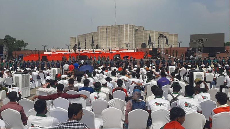বৃহস্পতিবার রাতে বিক্ষোভের পর সকালে ‘জুলাই শহীদ পরিবার ও আহত যোদ্ধা’ ব্যানারে শতাধিক মানুষ সংসদ ভবন এলাকার ১২ নম্বর গেটের সামনে অবস্থান নিয়ে স্লোগান দেন। একপর্যায়ে তাঁরা সংসদ ভবন এলাকার ১২ নম্বর গেট টপকে ভেতরে ঢোকেন। মঞ্চের সামনে অতিথিদের চেয়ারে বসে স্লোগান দিতে থাকেন। আন্দোলনকারীদের দাবি, জুলাই আন্দোলনে তাদের অবদানের রাষ্ট্রীয় স্বীকৃতি, আইনি সুরক্ষা, পুনর্বাসন বাস্তবায়ন করতে হবে।