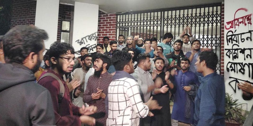 ঘোষণা অনুযায়ী আগামী ১৭ ডিসেম্বর নির্বাচন হওয়ার কথা রয়েছে। তবে প্রশাসনের ঘোষিত এ তারিখ প্রত্যাখান করে উপাচার্য, উপ-উপাচার্য,কোষাধ্যক্ষ , রেজিস্ট্রার ও নির্বাচন কমিশনকে অবরুদ্ধ করে প্রশাসনিক ভবন-১ এ তালা দিয়েছেন শিক্ষার্থীরা।