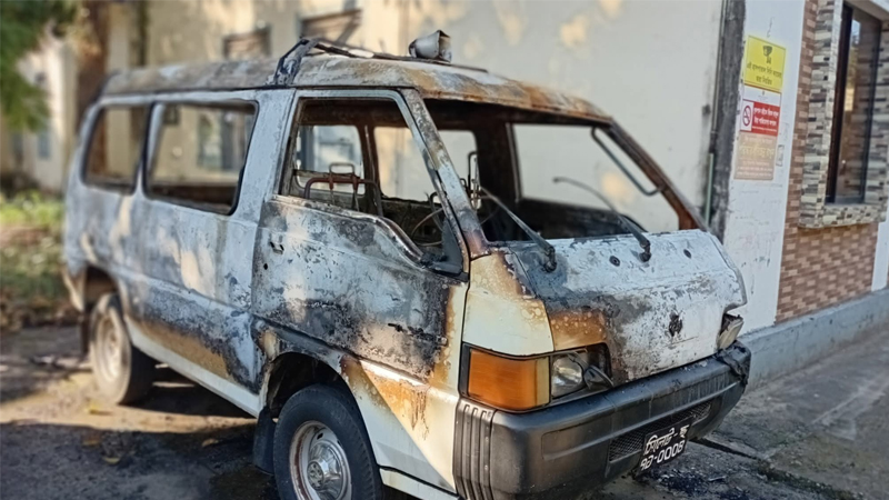 মধ্যরাতে সিলেটের শহীদ শামসুদ্দিন আহমদ হাসপাতালের পার্কিংয়ে দাঁড়িয়ে থাকা একটি অ্যাম্বুলেন্সে আগুন দিয়েছে দুর্বৃত্তরা। শনিবার (১৫ নভেম্বর) রাত আড়াইটার দিকে এ ঘটনা ঘটে বলে জানায় হাসপাতাল কর্তৃপক্ষ। তবে এ ঘটনায় কোনো হতাহতের ঘটনা ঘটেনি। হাসপাতালের সিসিটিভি ফুটেজে দেখা যায়, দুটি মোটরসাইকেলে করে পাঁচজন তরুণ প্রথমে পার্কিংয়ে প্রবেশ করে। পরে তাদের দেয়া আগুনে পুড়ে যায় অ্যাম্বুলেন্সটি। এছাড়া কুমারগাঁও বাসস্ট্যান্ড এলাকায় পরিত্যক্ত একটি বাসেও অগ্নিসংযোগের ঘটনা ঘটে।