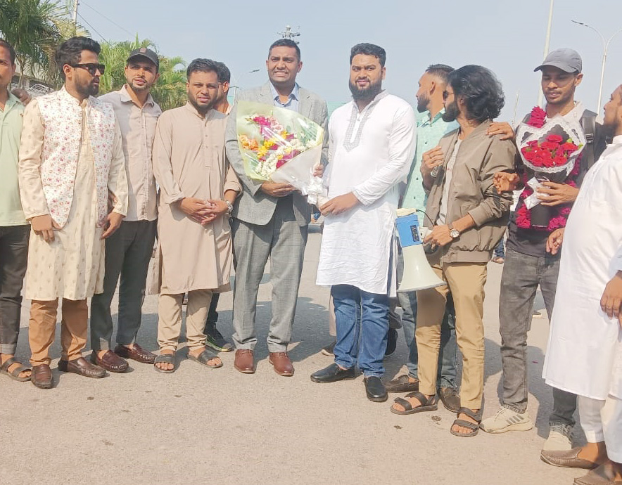 জৈন্তাপুর, গোয়াইনঘাট ও কোম্পানীগঞ্জ উপজেলা নিয়ে গঠিত সিলেট-৪ আসনে জাতীয় নাগরিক পার্টি (এনসিপি)-র সম্ভাব্য প্রার্থী, তথ্যপ্রযুক্তিবিদ ও শিক্ষানুরাগী প্রকৌশলী রাশেল উল আলম দেশে ফিরেছেন। রবিবার (২৩ নভেম্বর) দুপুর পৌনে ১টার দিকে তিনি ওসমানী আন্তর্জাতিক বিমানবন্দরে পৌঁছালে এনসিপির জেলা ও থানা পর্যায়ের নেতাকর্মীসহ সাধারণ মানুষ স্বতঃস্ফূর্তভাবে তাকে বরণ করে নেন।