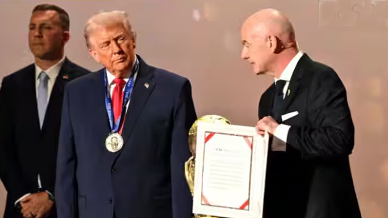 বিশ্বের বিভিন্ন জায়গায় যুদ্ধ ও সংঘাত থামিয়ে বিশ্বব্যাপী শান্তি বার্তা নিয়ে আসায় ডোনাল্ড ট্রাম্পকে প্রথম ফিফা শান্তি পুরস্কার দেওয়া হয়েছে। ফুটবল বিশ্বকে একত্রিত করে আর শান্তির বার্তা পাঠায়। আর ডোনাল্ড ট্রাম্প যুদ্ধ বন্ধ করে শান্তি এনে সেই বার্তাটা ছাড়িয়ে দিয়েছেন বলেই এই পুরস্কার পেয়েছেন। ট্রাম্পের হাতে শান্তি পুরস্কারের পদক তুলে দিয়েছেন ফিফা সভাপতি জিয়ান্নি ইফান্তিনো। এর জন্য যে সার্টিফিকেটটি দেওয়া হয়েছে, সেখান থেকে একটা অংশ পড়ে শোনান তিনি। সেখানে বলা হয়, এটা বিশ্বের ফুটবলপ্রেমী কোটি কোটি মানুষের পক্ষ থেকে এই পুরস্কার দেওয়া হয়েছে।