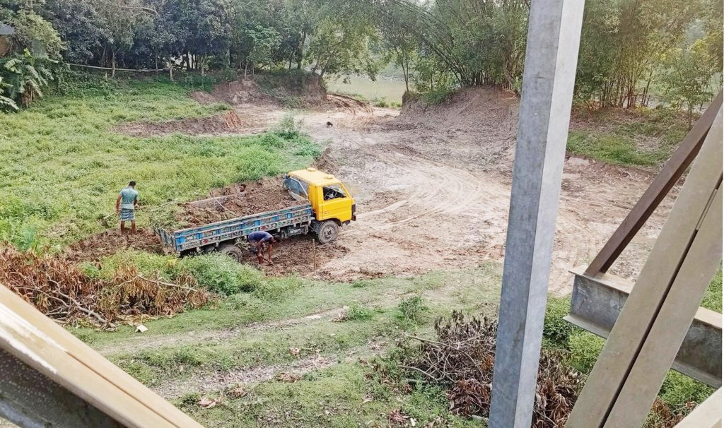 টিলা, পাহাড়ি ছড়া কেটে ও ব্রিজের নিচ থেকে অবৈধভাবে মাটি বালি উত্তোলন